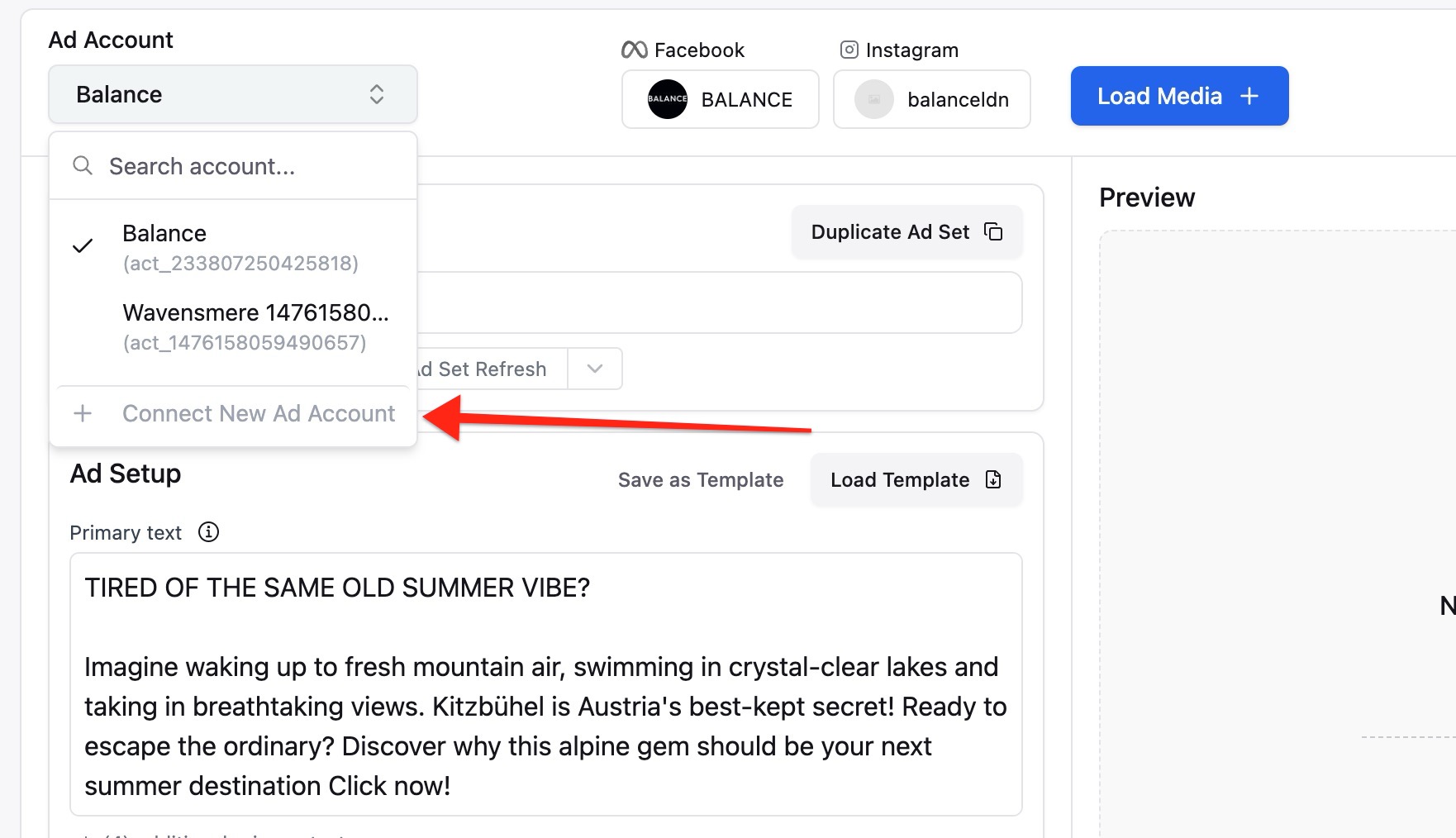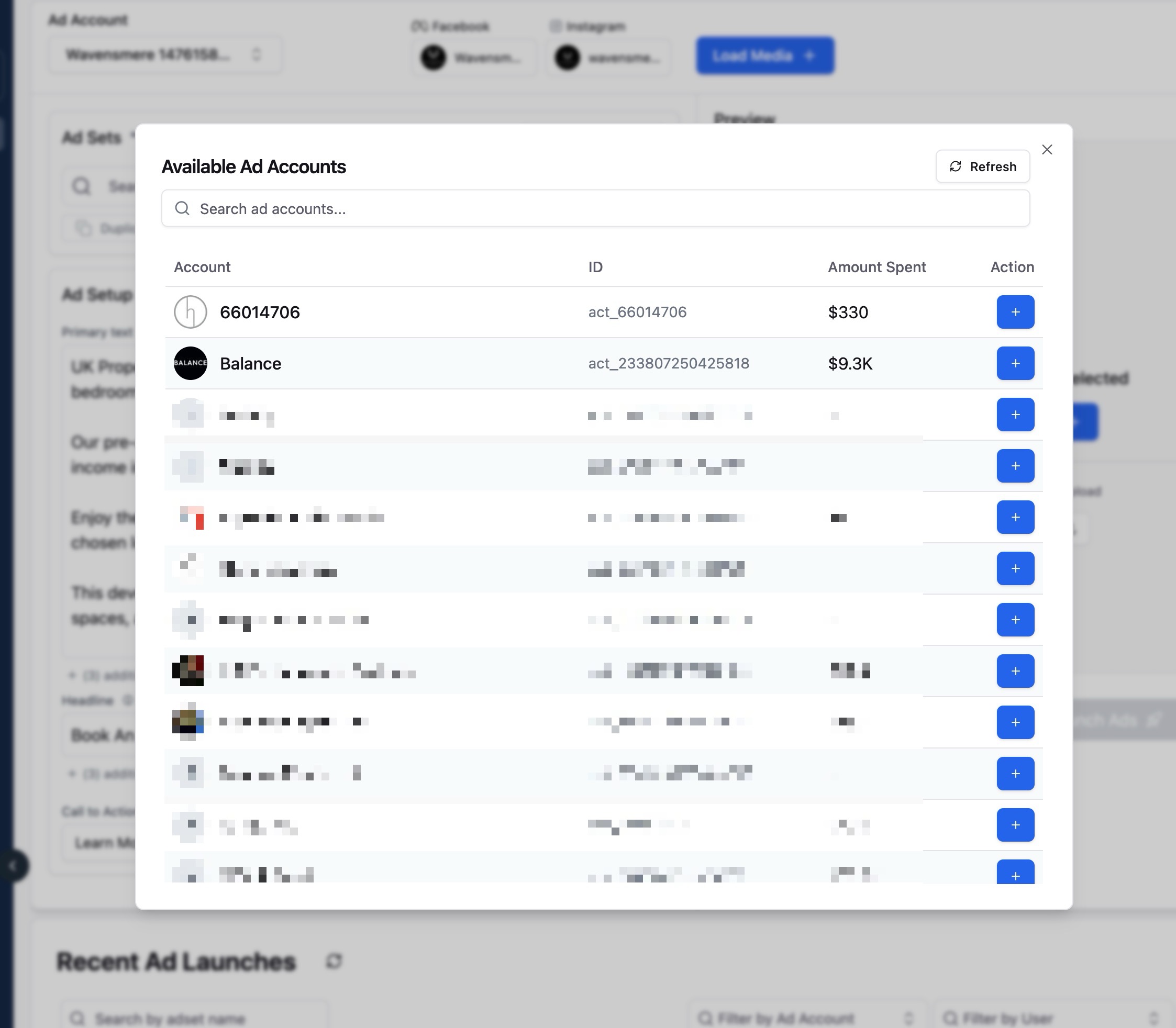 The best way to connect new Ad Accounts on the Launch page. ClickConnect New Ad Account