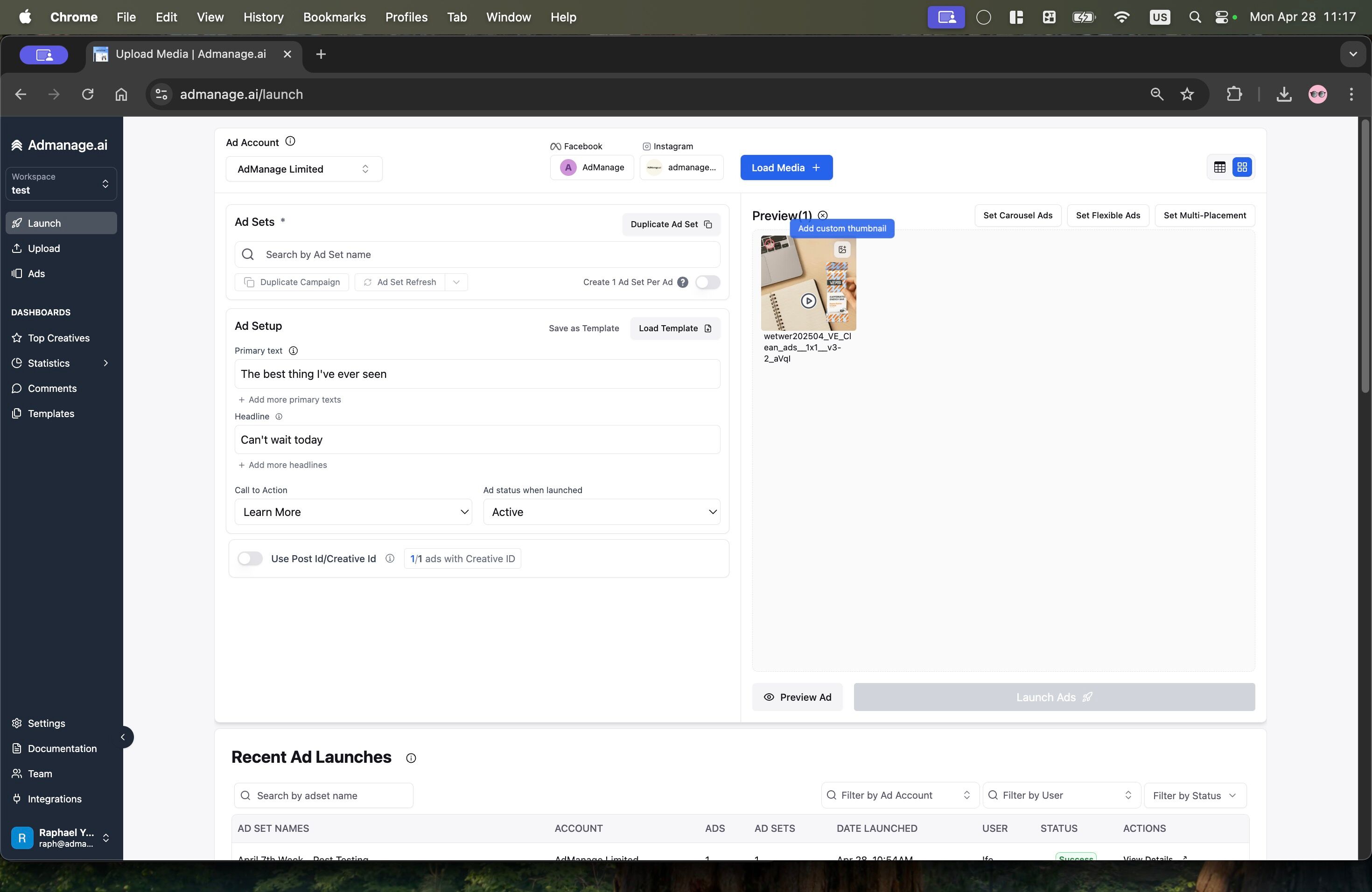 That’s it! Your thumbnail will now be used for your video ads.Learn how to set a custom thumbnail for your video ads in AdManage.