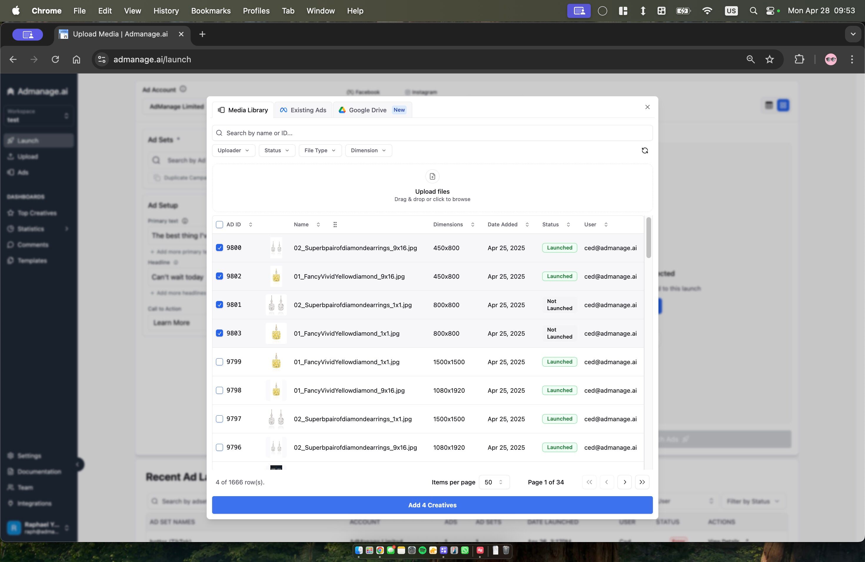 A step-by-step guide showing how to customize individual ad names in the table view, including selecting ads, using bulk edit functionality, and assigning custom names to different ads.